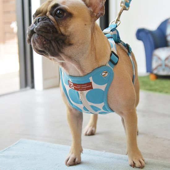 引きの強いフレンチブルのために身体をしっかりとサポートし、ワンちゃんにかかる負担を和らげる作りになっています。