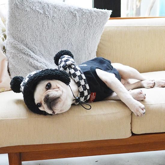 ニットキャップ【チェッカー】(ブラック)※Sサイズ