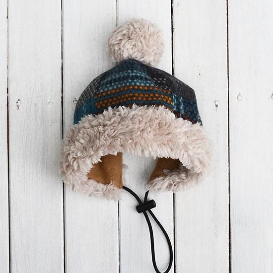 ニットキャップ【まだらチェック】(ブルー)