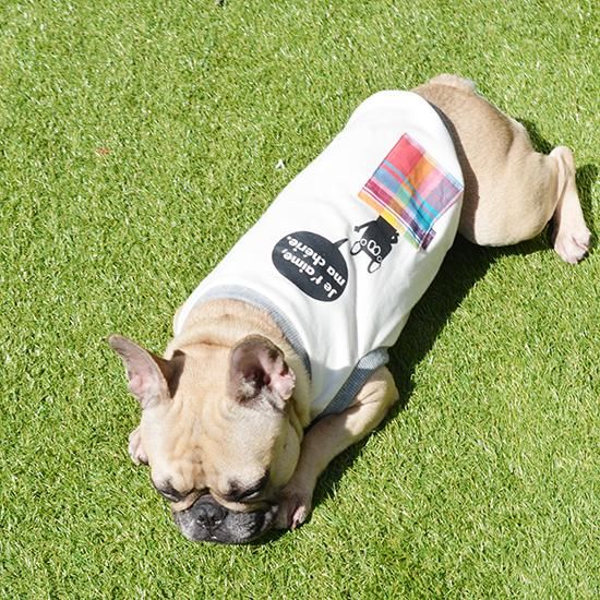 商品名の通り、ポケットからフレンチブルドッグくんが「ジュテーム マシェリ。(愛しい君よ、愛してるよ。)」と顔を出しています。