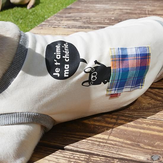 商品名の通り、ポケットからフレンチブルドッグくんが「ジュテーム マシェリ。(愛しい君よ、愛してるよ。)」と顔を出しています。