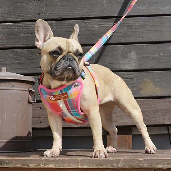 引きの強いフレンチブルのために身体をしっかりとサポートし、ワンちゃんにかかる負担を和らげる作りになっています。