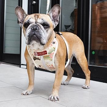 引きの強いフレンチブルのために身体をしっかりとサポートし、ワンちゃんにかかる負担を和らげる作りになっています。