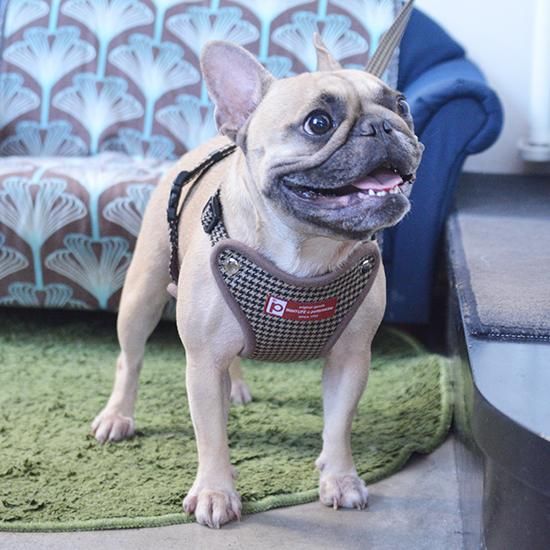 引きの強いフレンチブルのために身体をしっかりとサポートし、ワンちゃんにかかる負担を和らげる作りになっています。