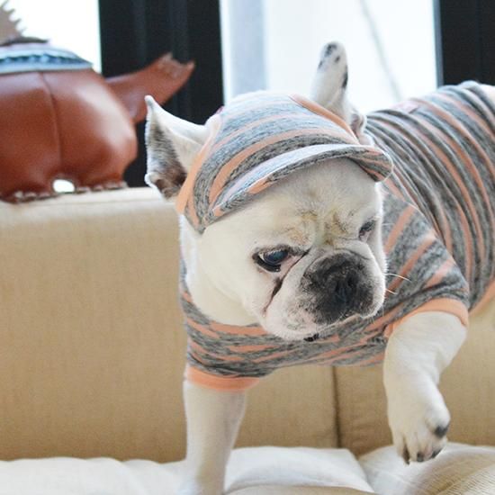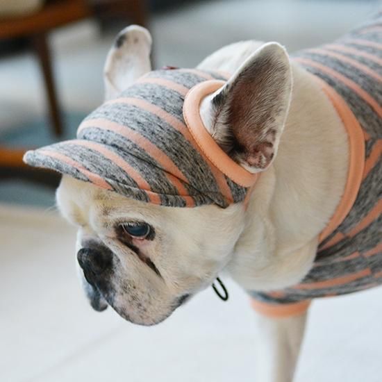 でも、毛色の濃いブリンドルやフォーンの子は太陽の熱を吸収しやすいので、キャップがあれば頭部に直射日光が当たるのを防いでくれるのです。もちろん、パイドやクリームの子にもオススメです。