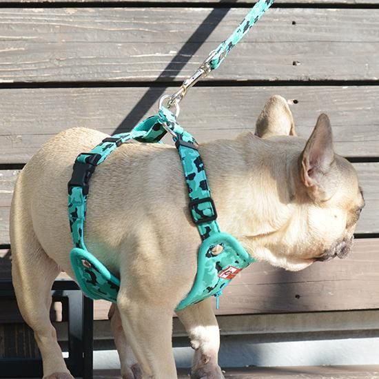 引きの強いフレンチブルのために身体をしっかりとサポートし、ワンちゃんにかかる負担を和らげる作りになっています。