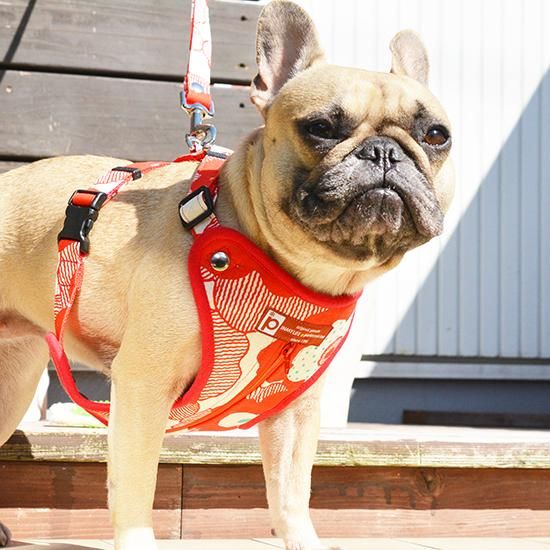引きの強いフレンチブルのために身体をしっかりとサポートし、ワンちゃんにかかる負担を和らげる作りになっています。