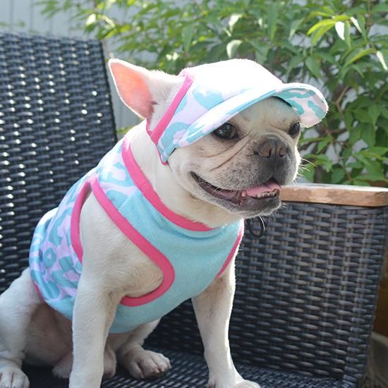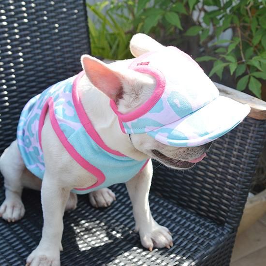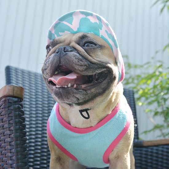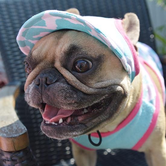 でも、毛色の濃いブリンドルやフォーンの子は太陽の熱を吸収しやすいので、キャップがあれば頭部に直射日光が当たるのを防いでくれるのです。もちろん、パイドやクリームの子にもオススメです。