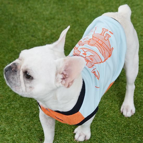 背中のプリントの保安官風のフレンチブルドッグが、なんともいい味を出しています。