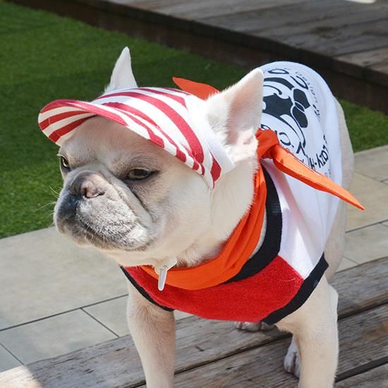 でも、毛色の濃いブリンドルやフォーンの子は太陽の熱を吸収しやすいので、キャップがあれば頭部に直射日光が当たるのを防いでくれるのです。もちろん、パイドやクリームの子にもオススメです。