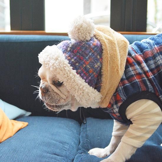 当店の冬の人気商品『ニットキャップ』を、ツイード生地で作りました。