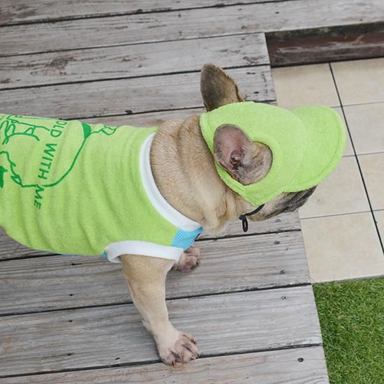 でも、毛色の濃いブリンドルやフォーンの子は太陽の熱を吸収しやすいので、キャップがあれば頭部に直射日光が当たるのを防いでくれるのです。もちろん、パイドやクリームの子にもオススメです。