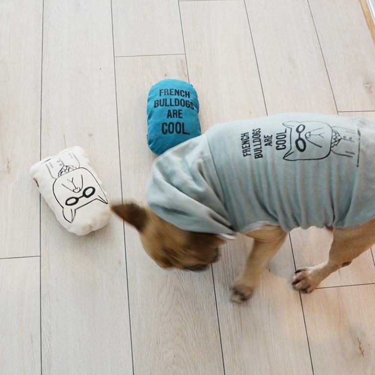 当店の人気デザイン『FRENCH BULLDOGS ARE COOL.』が犬のおもちゃになりました!