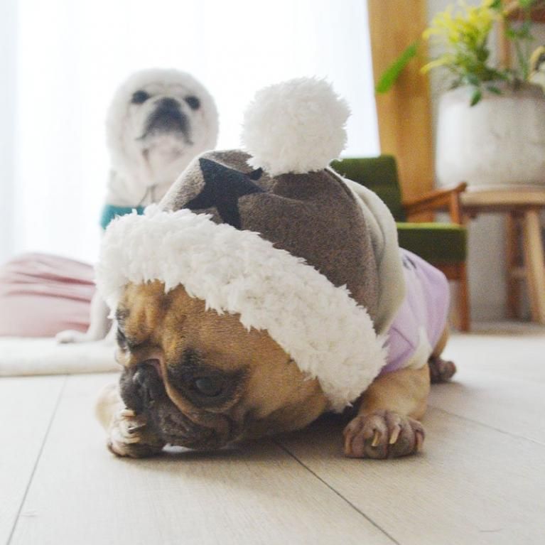 ポチョムキンのニットキャップをかぶると、元々まん丸なお顔がもっとまん丸になって・・・ほら可愛いでしょ?