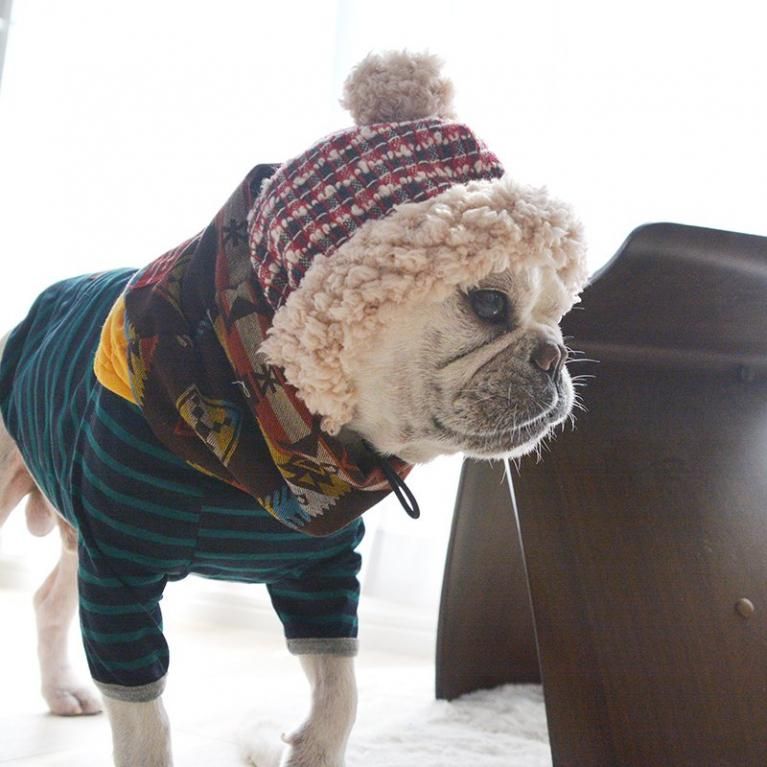 ポチョムキンのツイードキャップをかぶると、元々まん丸なお顔がもっとまん丸になって・・・ほら可愛いでしょ?