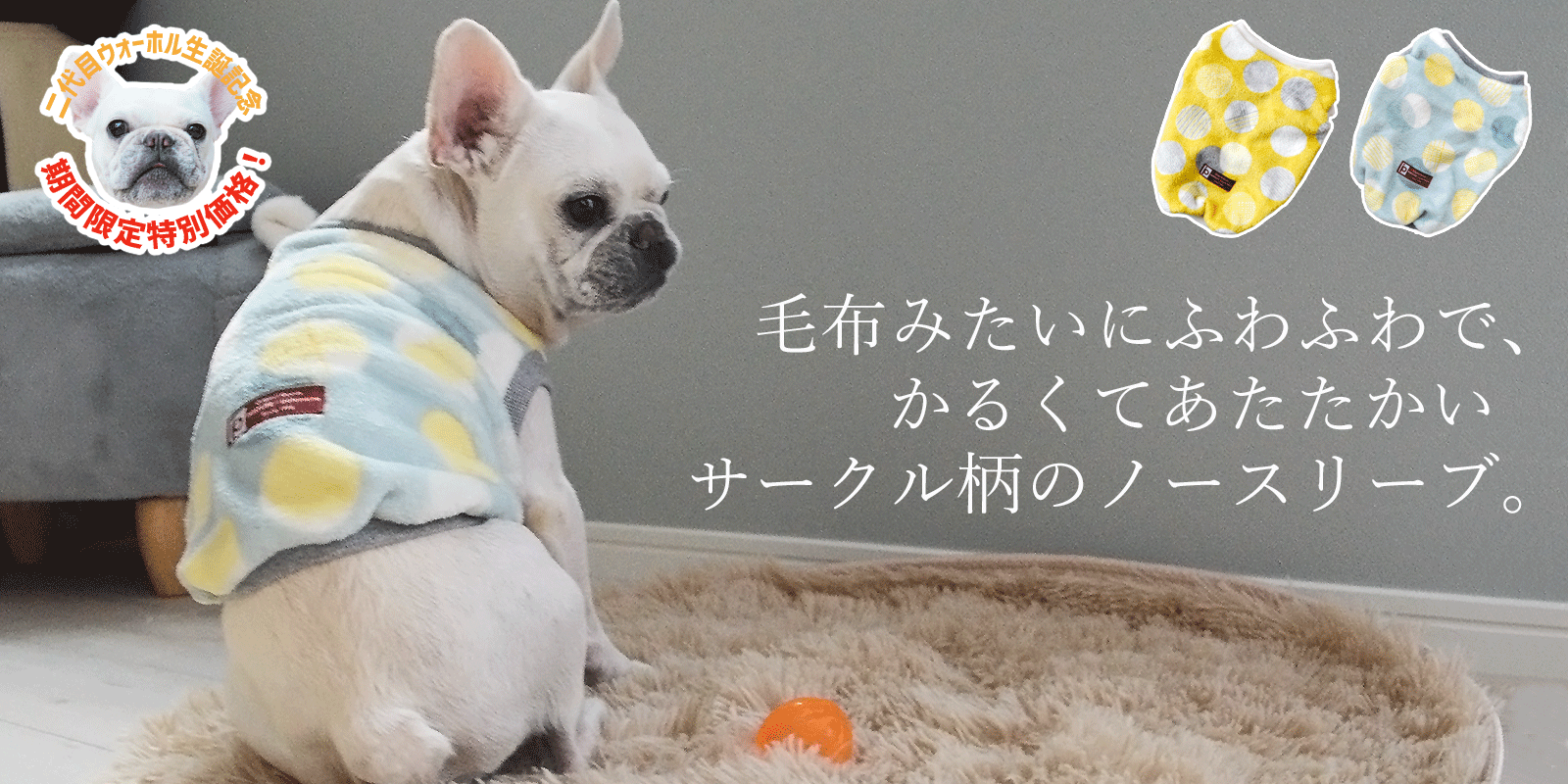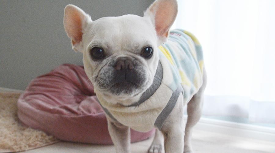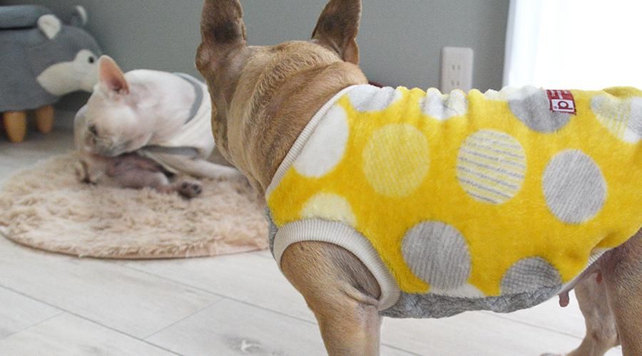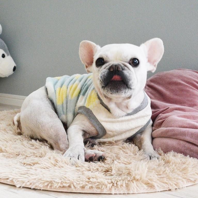 モデル:ウォーホル【2代目】(♂) 着用サイズ:FB-S (首回り:32cm / 胴回り:45cm / 着丈:33cm)