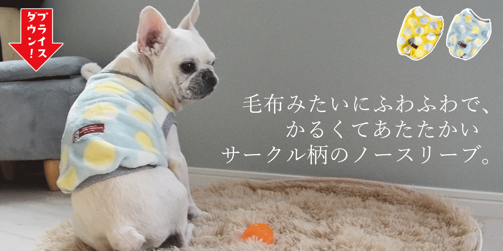 モデル:ウォーホル【2代目】(♂) 着用サイズ:FB-S (首回り:32cm / 胴回り:45cm / 着丈:33cm)素材:ポリエステル、綿