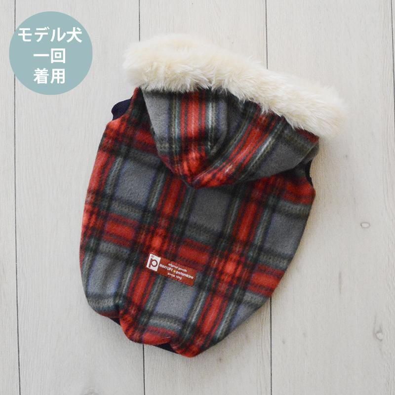 【ガレージセール!】かるくてあったかフリースパーカー(グレーと赤のチェック)【FB-M 丈の長さ:そのまま】