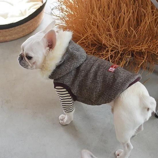 『ツイード生地みたいなフリースで作ったノースリーブパーカー』は、フード周りにフェイクファーが付いていてとても秋冬らしい一着。