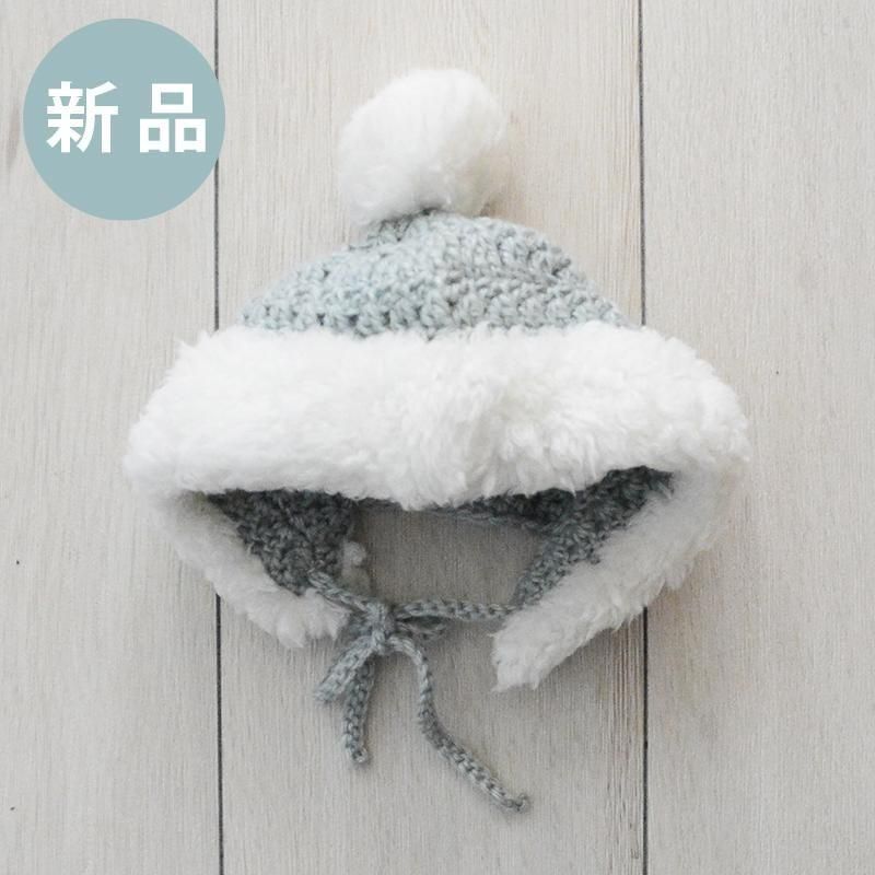 【ガレージセール!】手編みのニットキャップ(水色)【Mサイズ】