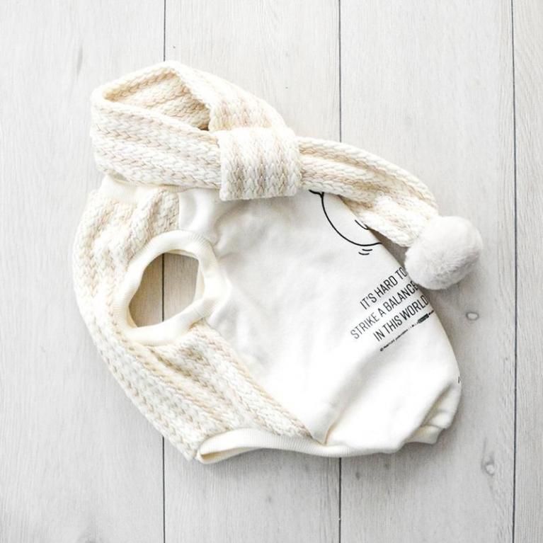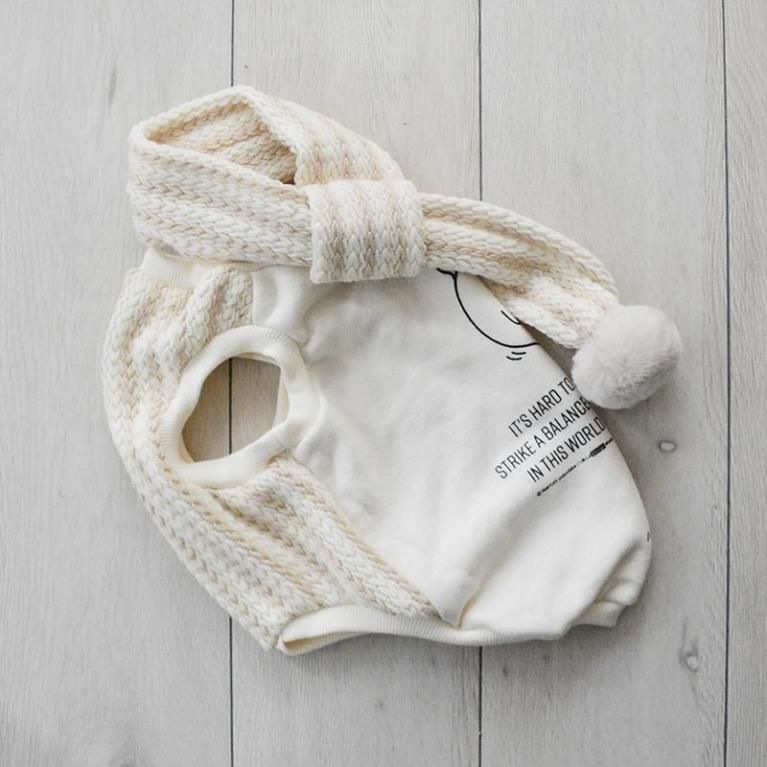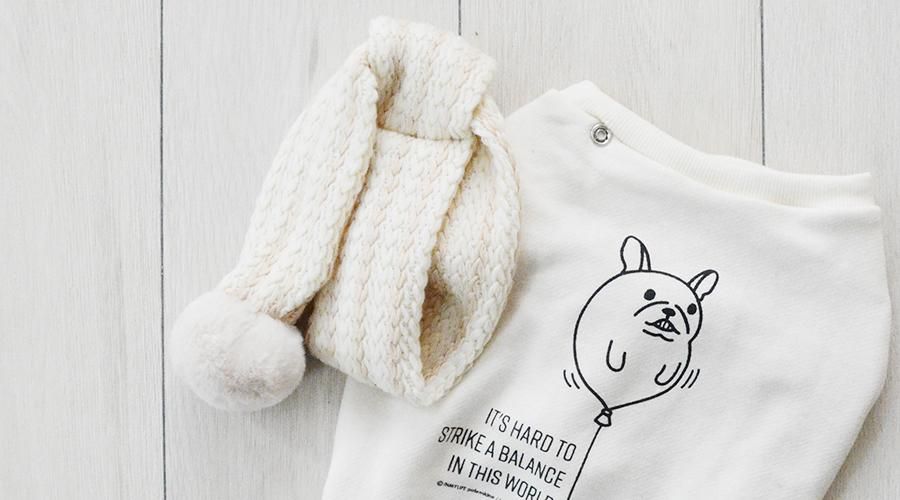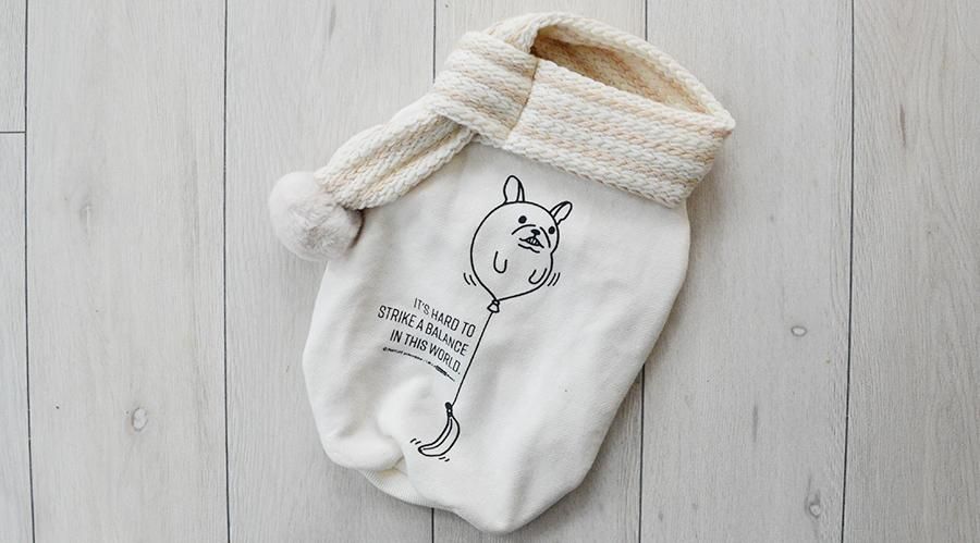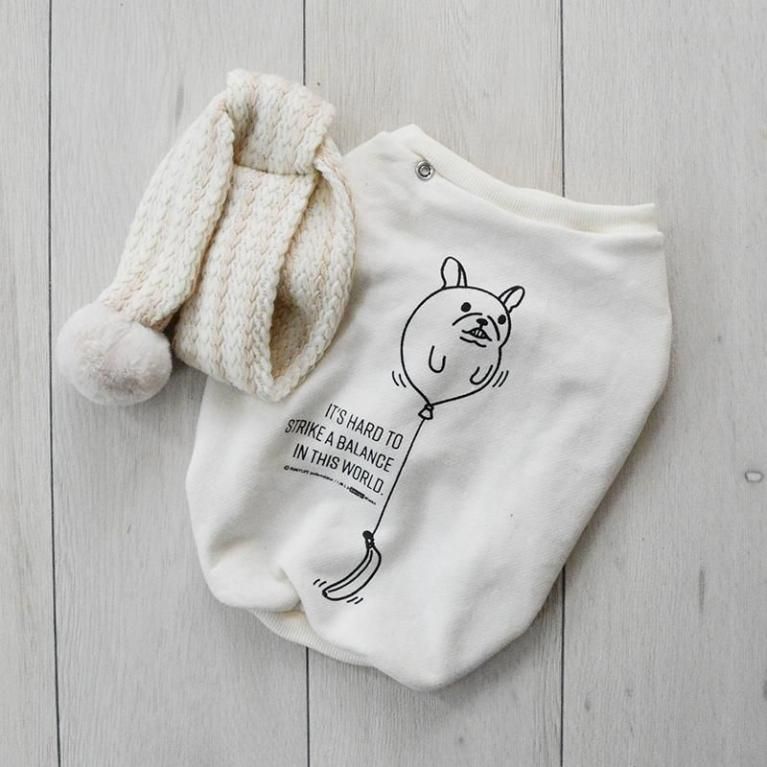 ふんわり可愛いマフラーと、シュールなイラストが、不思議とマッチしていて唯一無二の可愛いお洋服に仕上がりました。