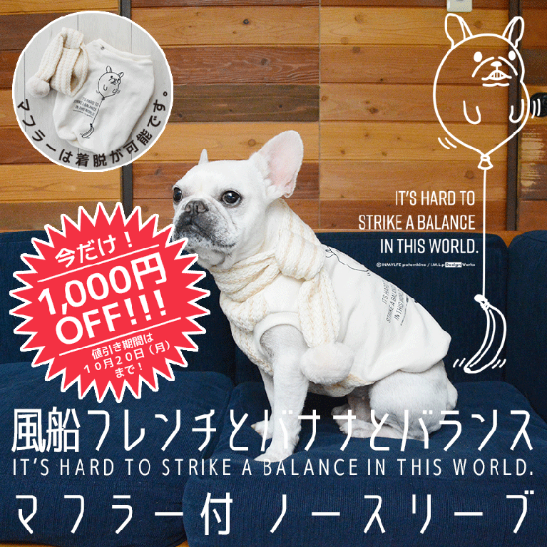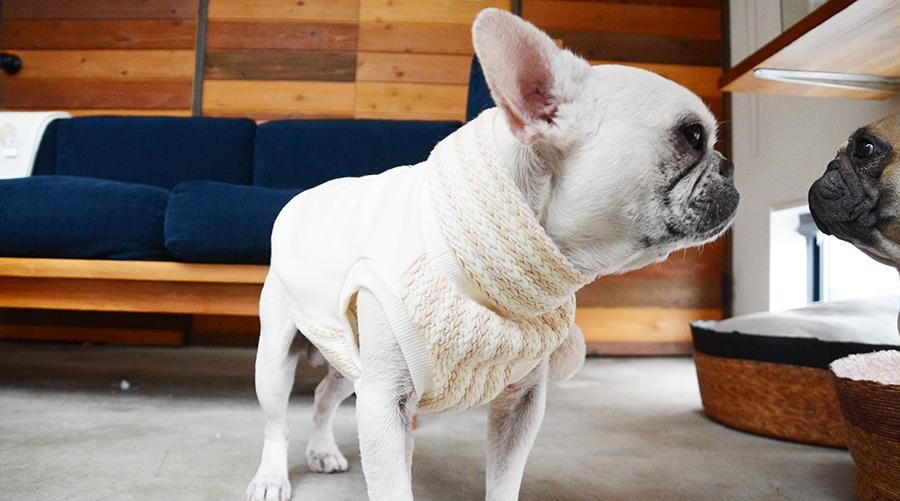 モデル:ウォーホル【2代目】(♂) 着用サイズ:FB-S (首回り:32cm / 胴回り:45cm / 着丈:33cm)