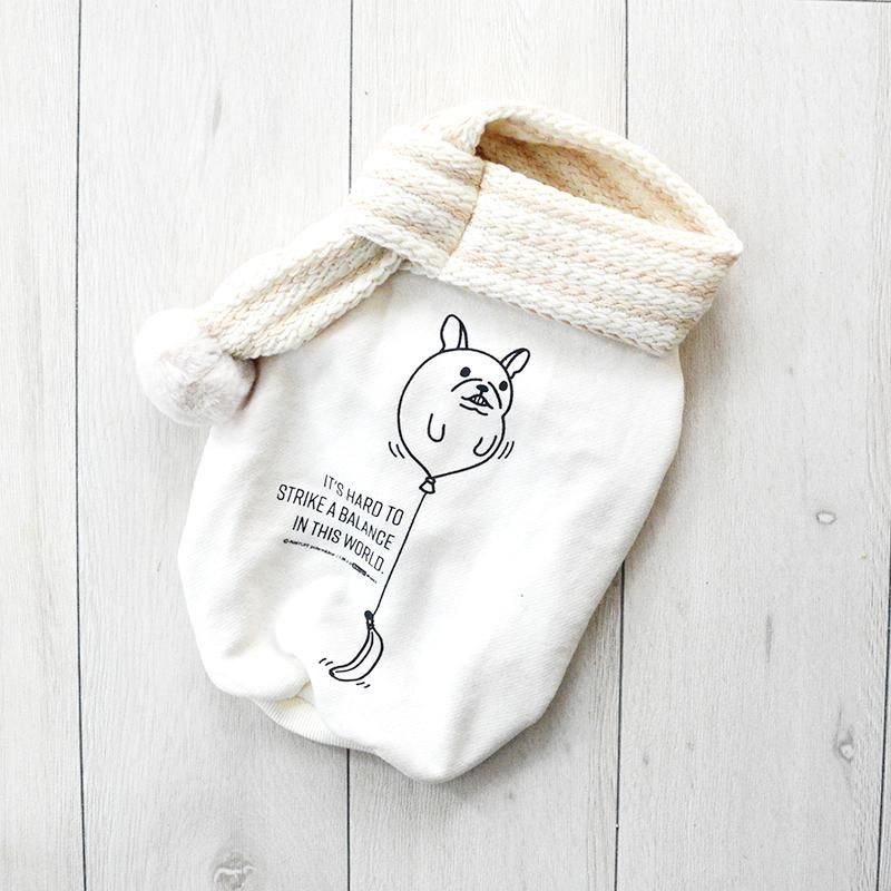 モデル:ウォーホル【2代目】(♂) 着用サイズ:FB-S (首回り:32cm / 胴回り:45cm / 着丈:33cm)素材:コットン60%、ウール31%、ナイロン8%、アクリル1%(トレーナー生地:綿100%)