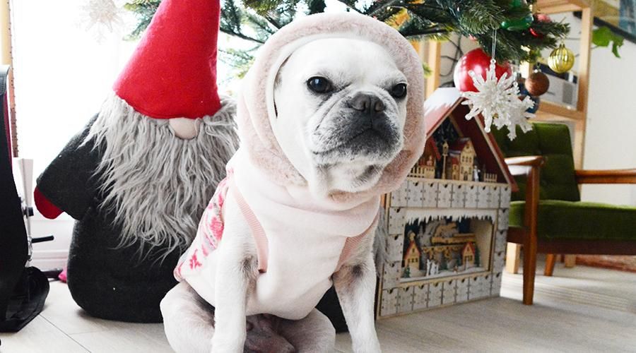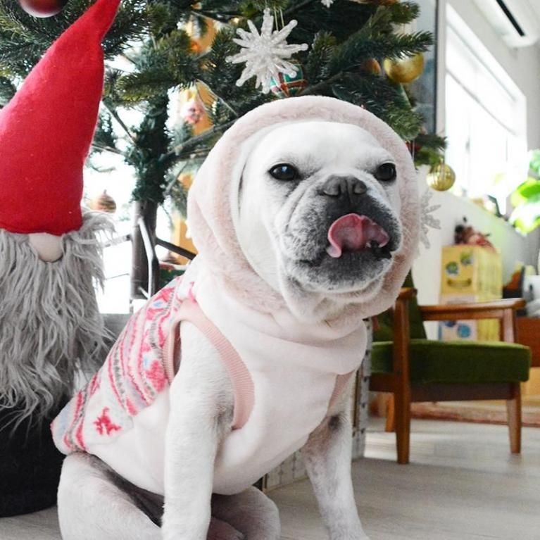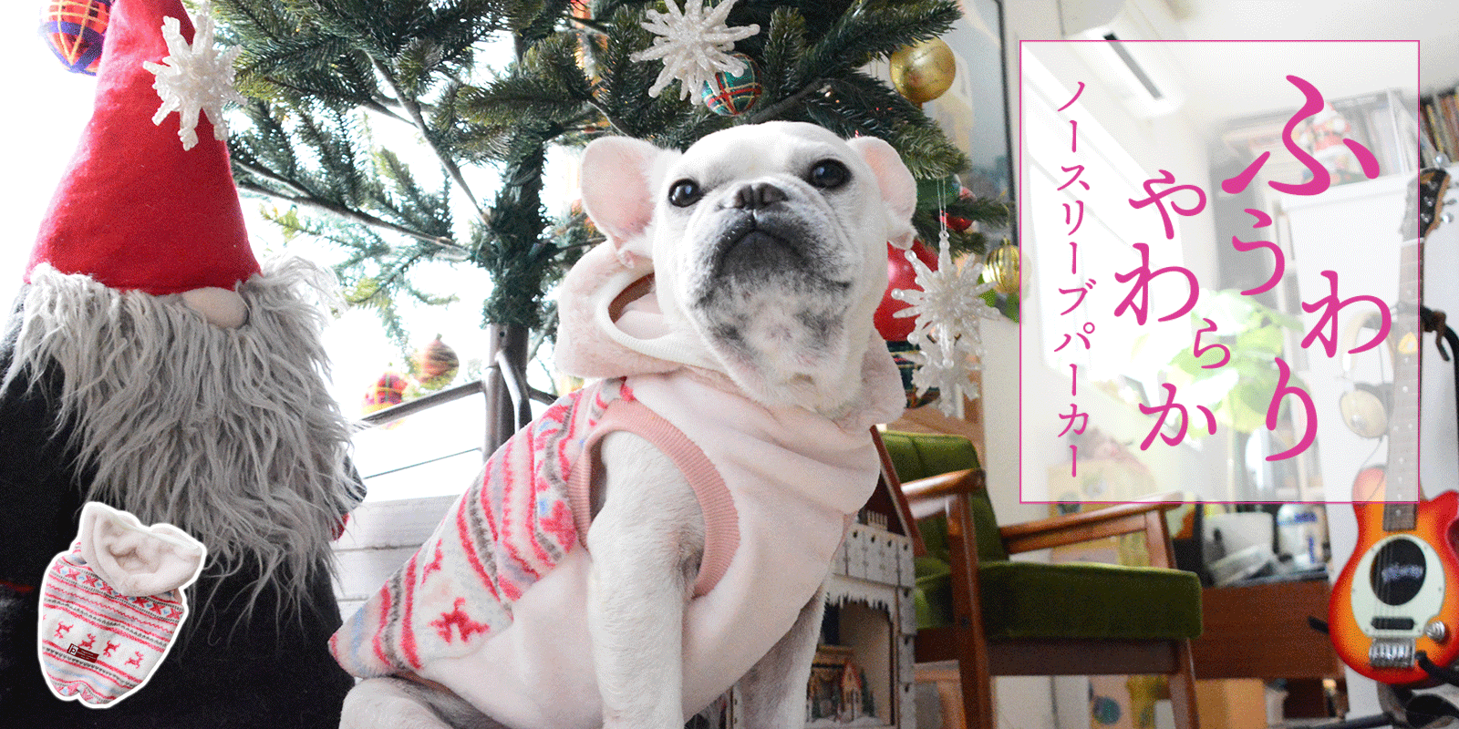 モデル:ルーシー【2代目】(♀) 着用サイズ:FB-S (首回り:32cm / 胴回り:47cm / 着丈:28cm)