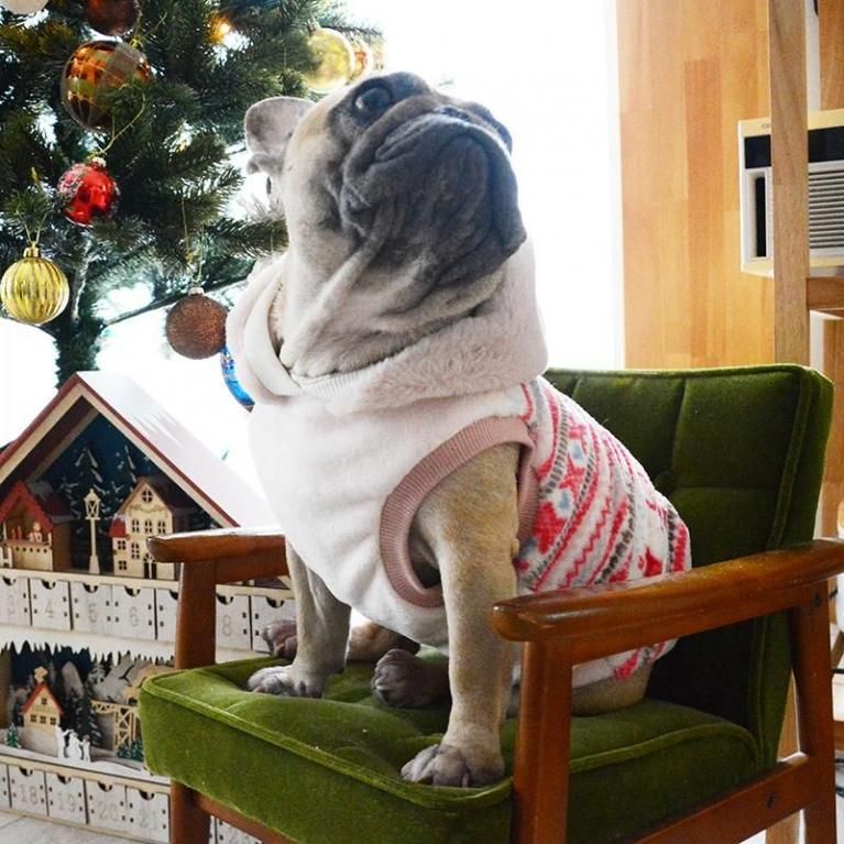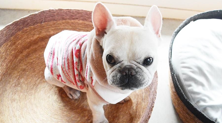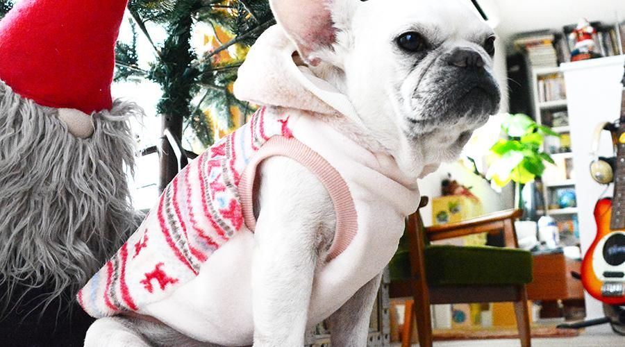 モデル:ウォーホル【2代目】(♂) 着用サイズ:FB-S (首回り:32cm / 胴回り:45cm / 着丈:33cm)