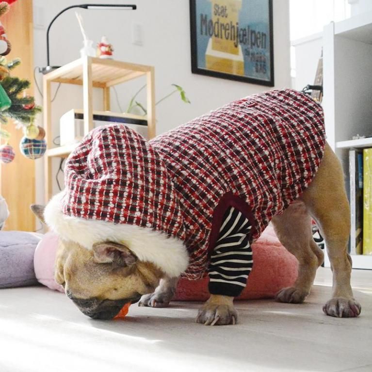 モデル:ルーシー【2代目】(♀) 着用サイズ:FB-M (首回り:32cm / 胴回り:47cm / 着丈:28cm)