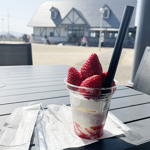 一人で美味しそうなイチゴシェークを飲んでいたようです。