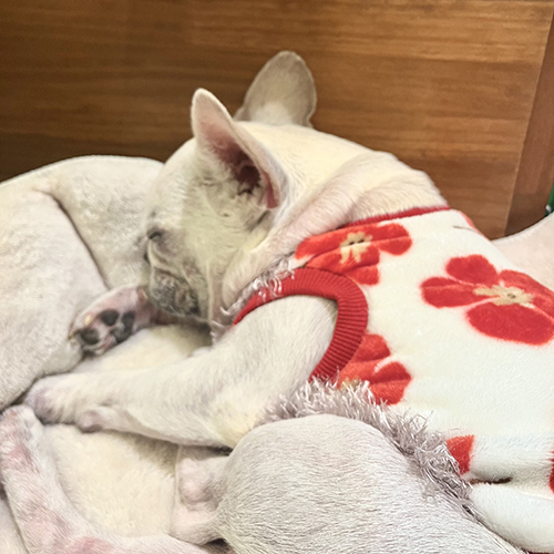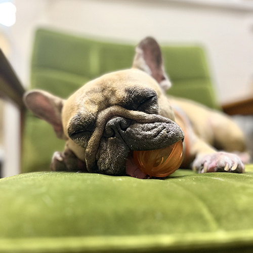 大好きなボールを咥えながら眠るルーシーさん。