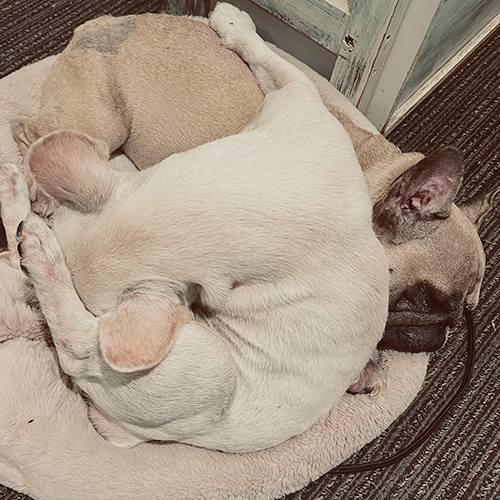 足元で、気持ち良さそうに寝ているウォーホルさん☺️