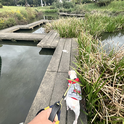 娘が「ウォーホルと公園に行きたーい!」と言うので、車で大きな公園へ。ルーシーさんは足の裏をケガしているので留守番です😁