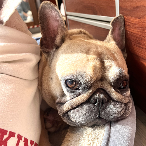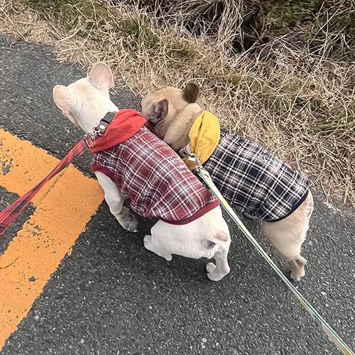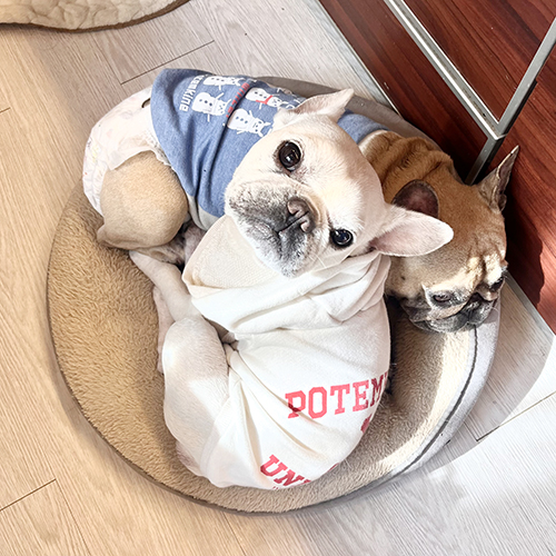 ルーシーさんが日向ぼっこをしていると、「僕も入れてワン。」とウォーホルが後からやって来ました。