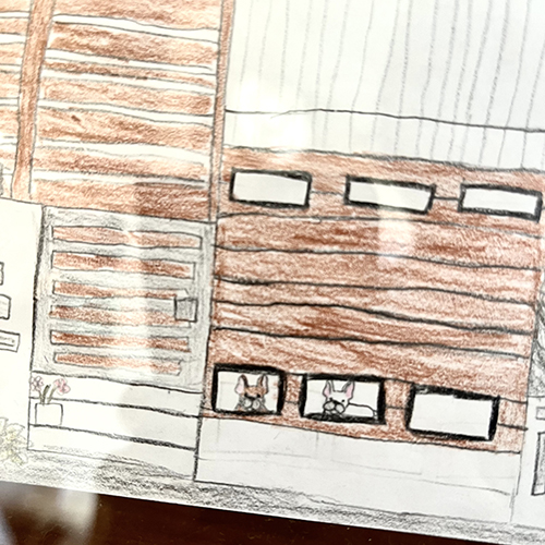 ちゃんとルーシー&ウォーホルと、おかあさん、おとうさんも描いてくれましたよ😊
