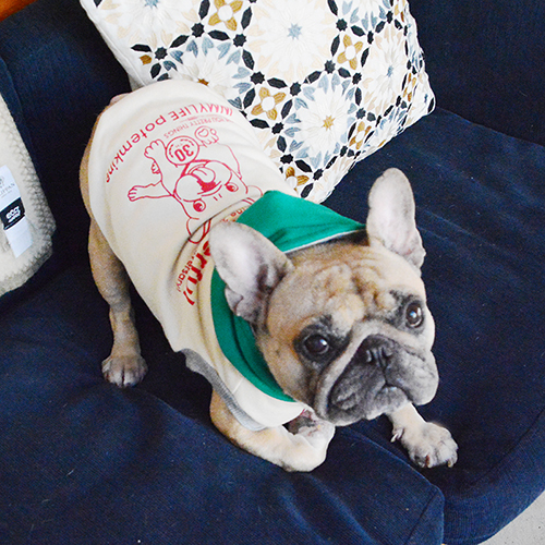 全犬種のサイズを製作していた当店が、初めてフレンチブルドッグだけのために描いたデザインが『OH! YOU PRETTY THINGS』。