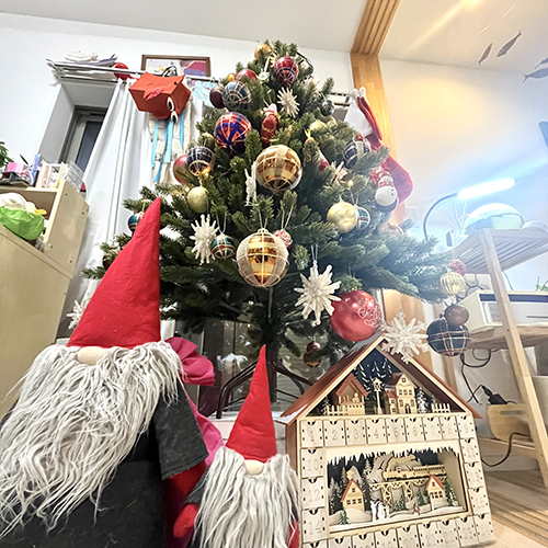 ハロウィンの翌々日にはクリスマス🎄クリスマスソングをかけながら楽しく飾り付けです。